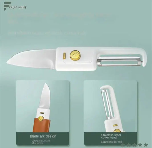 Portable Small 2-in-1 Fruit Knife & Peeler Set - Multifunctional Stainless Steel Peeler and Knife with Easy-to-Hold Dual Grip