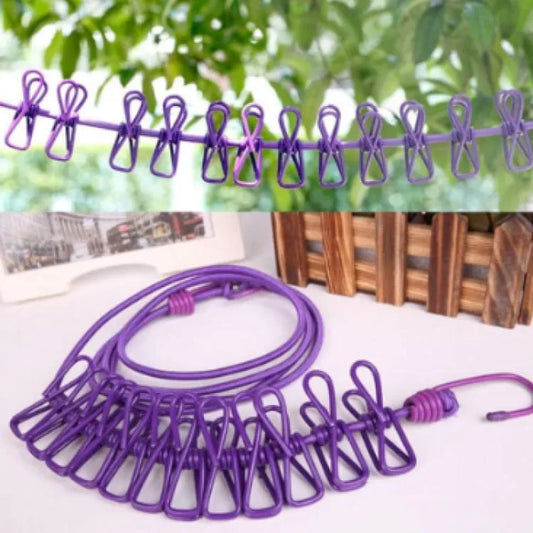 badgeFRAKIN 12 Clips Clothesline Rope Elastic Cloth Drying Hanging Rope