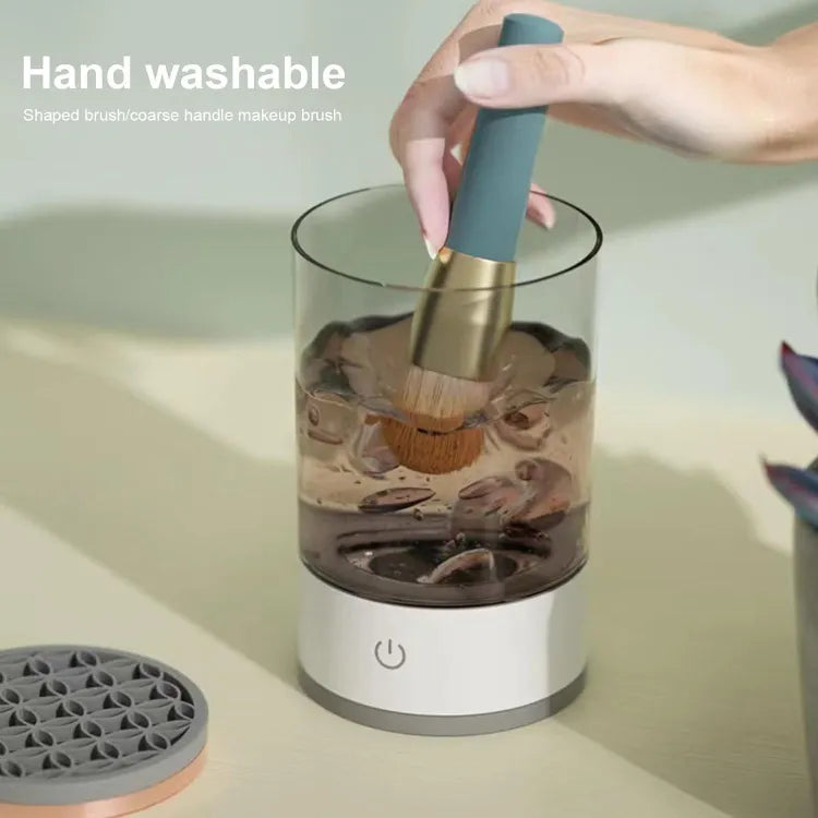 2. The electric makeup brush cleaner can cover various sizes of bristles for high-speed and gentle cleaning, ensuring that the makeup residue on the makeup brush is fully cleaned without damaging the shape and softness of the brush. The cleaning process is not only low-noise, but also saves time and energy.